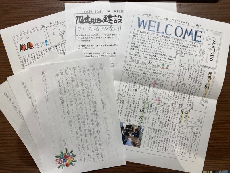 三人がそれぞれ手紙をくれて、松尾建設での学びを新聞にしてくれました!