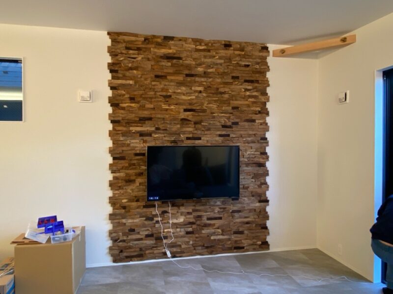 お昼前から夕方までオーナー様宅にお邪魔をして壁掛けテレビ取付とアクセント壁貼りを楽しく作業をさせていただきました!