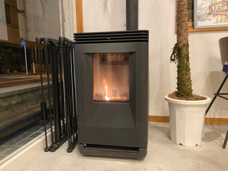 昨年、天井付けの大きなエアコンを設置して冷暖房はだいぶ効くのですが、ペレットストーブの暖かさは身体の芯から暖まるので別格です!