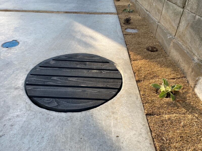 今日は先日塗装が完了したエアコンカバーと駐車場のマスの蓋を造作したので設置に伺いました。