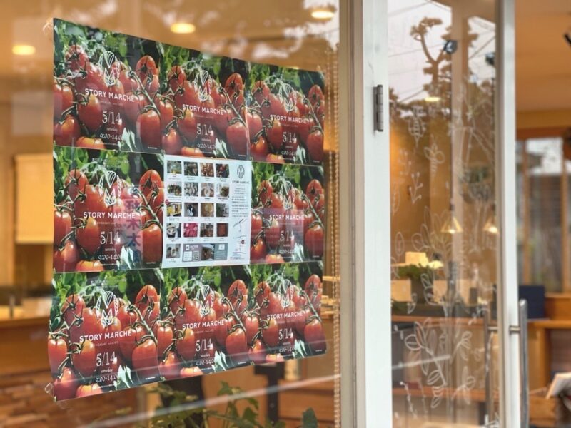 ショールームの入口ドアもマルシェ仕様になり少しずつ準備が始まっております。