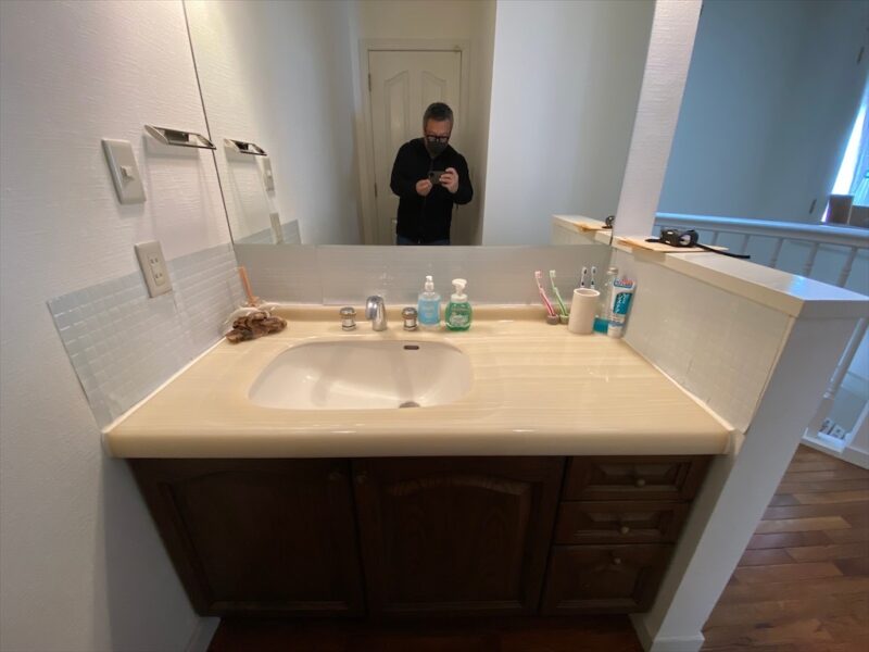 洗面前はDIYのシート貼りからの貼り替えでかなり見栄えが良くなりました!