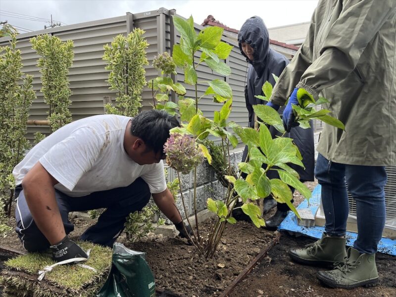 あいにくの雨模様ではありましたが大した降りにはならず無事に移植と植栽が完了いたしました!