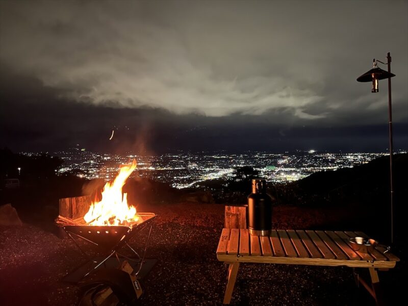 お天気は夜まで続き夜景と焚火を楽しみ贅沢なひとときを過ごしました!