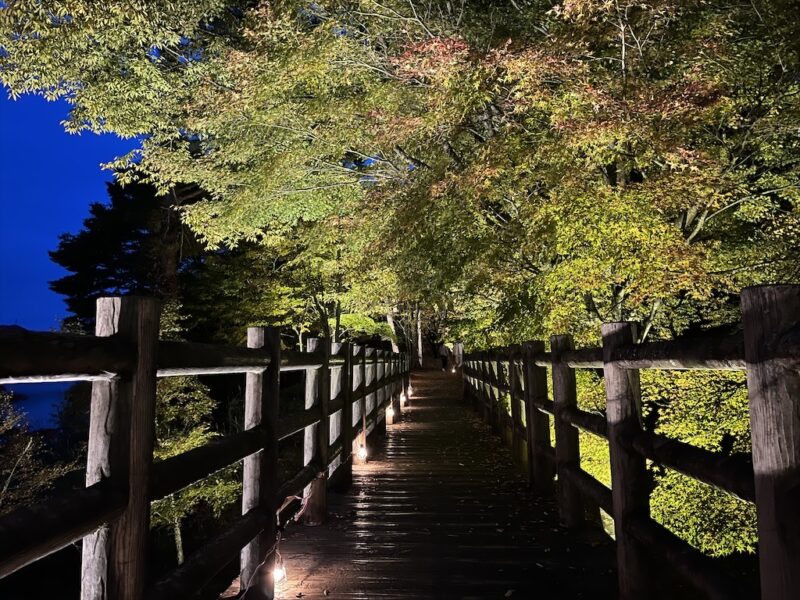 紅葉も始まっており湖畔のライトアップも綺麗でした!!