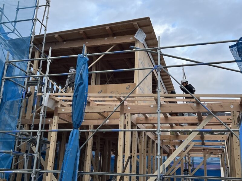 本日はお天気にも恵まれて湯河原町で施工中の注文住宅が上棟いたしました!