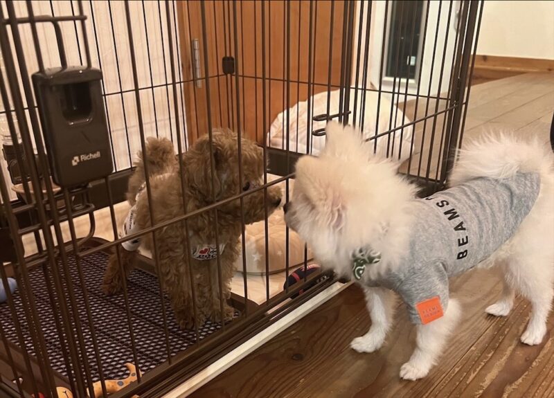 そう言えば昨晩、長男がポメラニアンを連れて夕飯を食べにきて我が家のトイプードルと初対面しました。