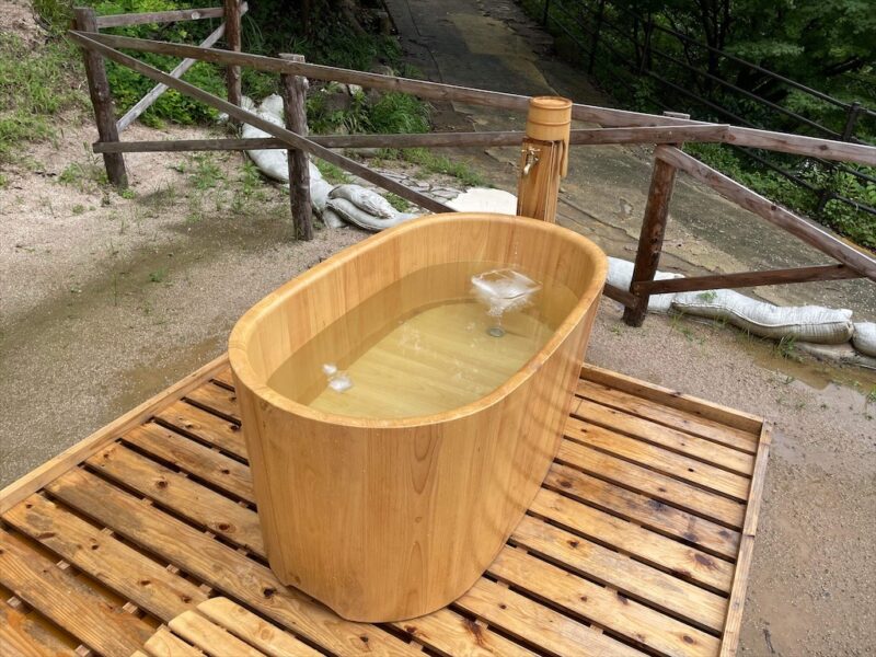 木製の風呂桶が水風呂となりスタッフの方が定期邸に大きな氷を足してくれるので冷たい水に浸かる事も可能です!