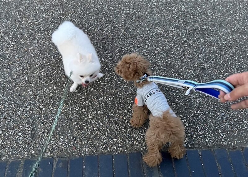 仕事中の長男宅のポメラニアンも連れ出し仲良くお散歩に出かけたようです。