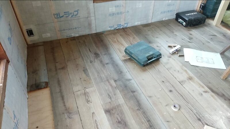 先日リフォームの現場で貼った杉の足場のフローリング。
