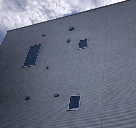 新築当時に施工した光触媒の外壁材は流石とても綺麗に維持しておりますが、建物の裏側である北側に換気口が多くあるため良くある黒ずみが発生していました。