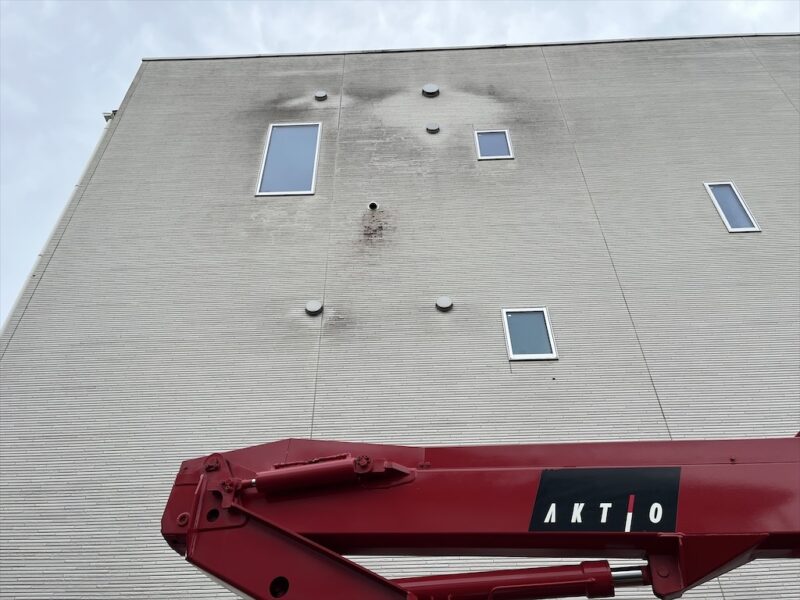 今回はすぐ横に駐車スペースがあったため高所作業車を使い北面のみを洗浄させていただきました。