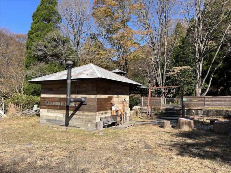 廃校を宿泊施設、そして外の炊事場近くにあった五右衛門風呂の建屋をサウナにリビルド。