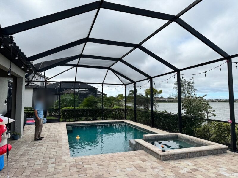 平屋、二階建ての規格型で数種類のパターンから選び建築をしているプールやガレージのついた住宅。