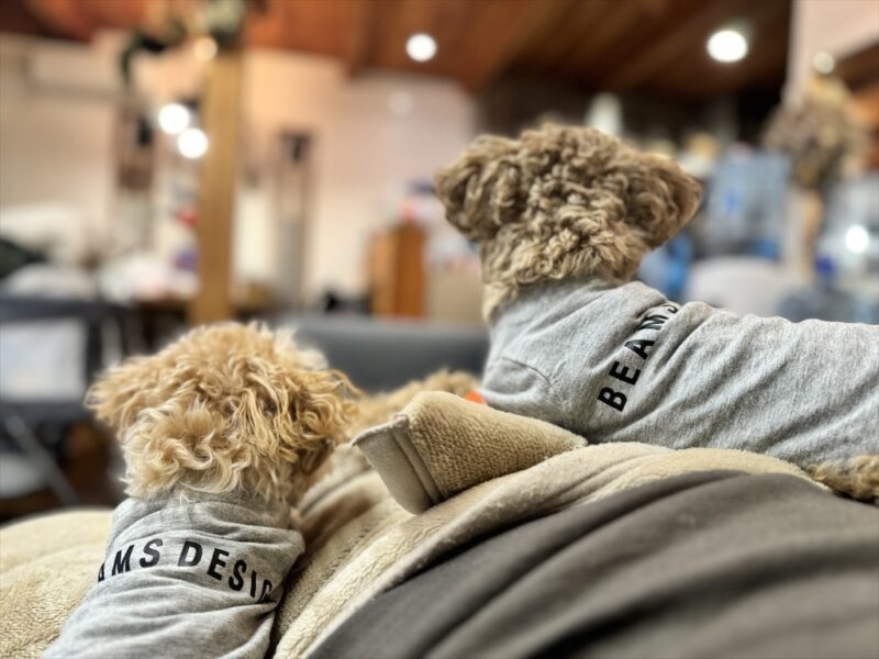 帰宅後はソファで横になっていると愛犬二匹がお腹の上で寝始めました。