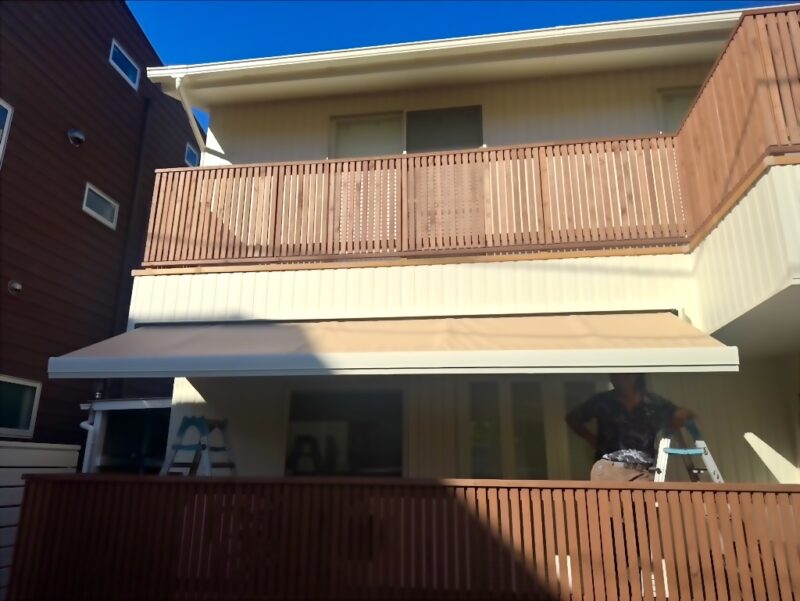 今日は、オーナー様宅のサンデッキにオーニングを取り付けさせていただきました。