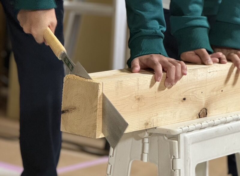 大工さんから直接指導を受けたり、簡単な作業のお手伝いもさせていただき、実際の現場の空気に触れてもらうことで、家づくりの一端を体験してもらいました。
