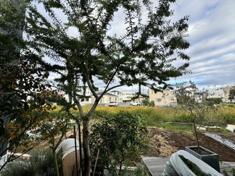 地植えされたシマトネリコやミモザは、土壌の良さもあってすくすくと成長し、とても元気な姿を見せてくれました。