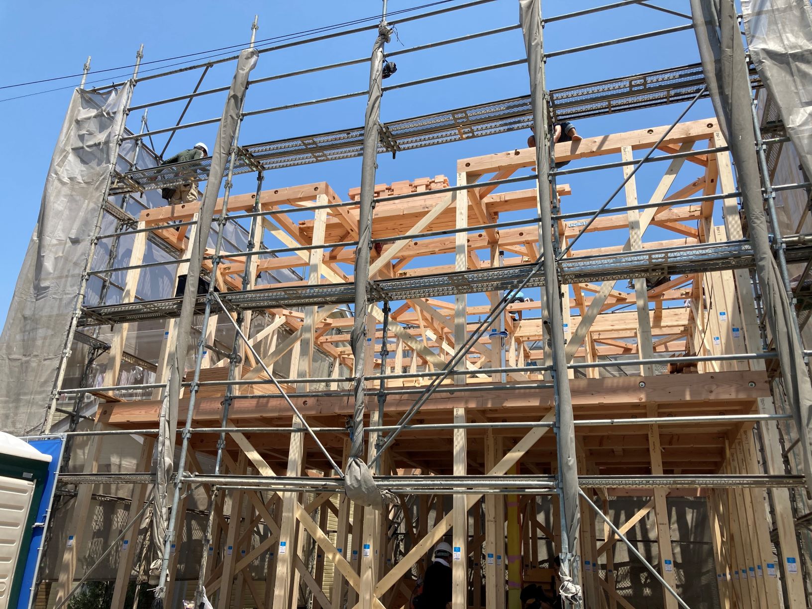 こうして上棟した建物を見上げるとかなりの迫力があるものです。