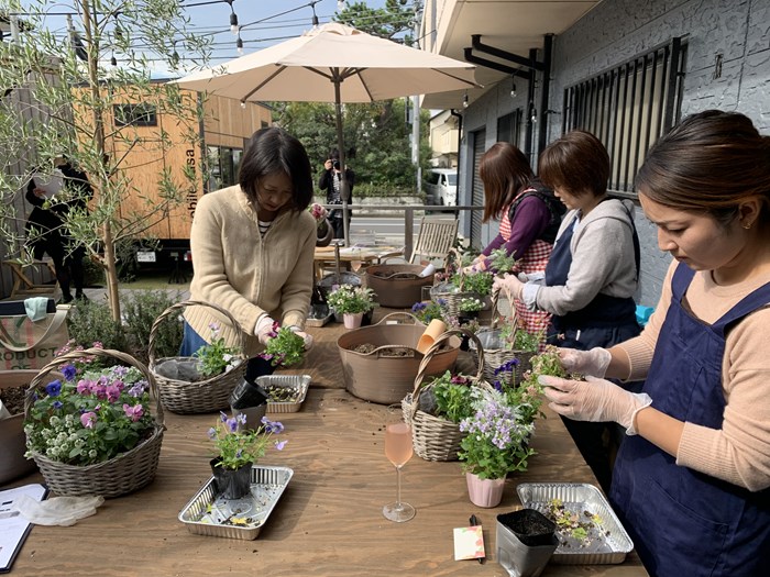 今回は「ビオラの寄せ植え」ワークの後は参加者の皆さんでお茶やお菓子を食べたりと楽しいひと時だったと思います。