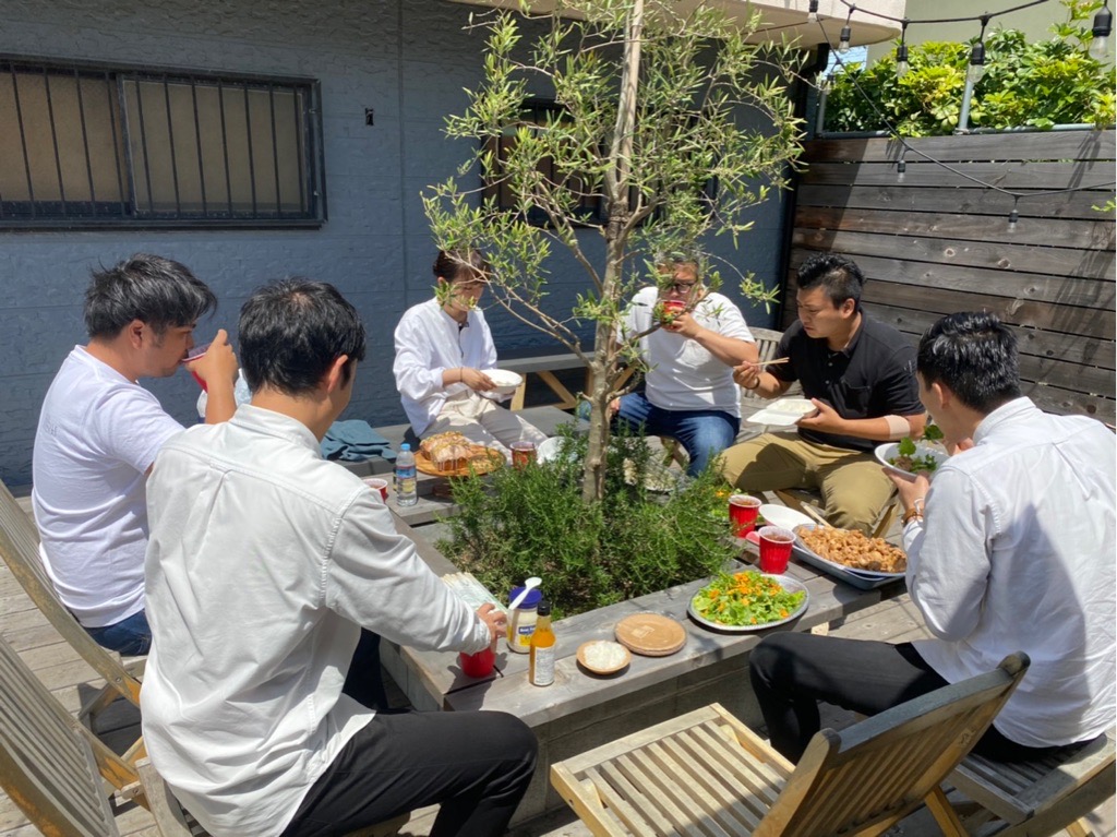 その時間帯に居たスタッフと一緒にデッキでお昼ご飯を食べました。