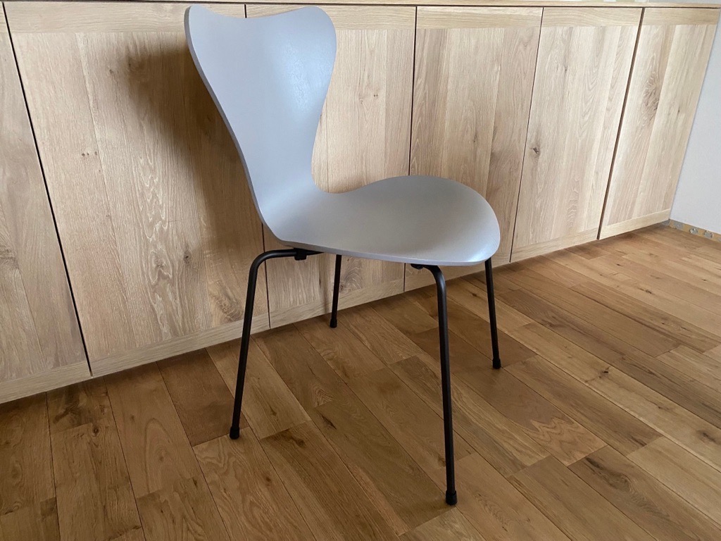 施工途中の接客ルームでお気に入りの椅子に座ってのミーティング