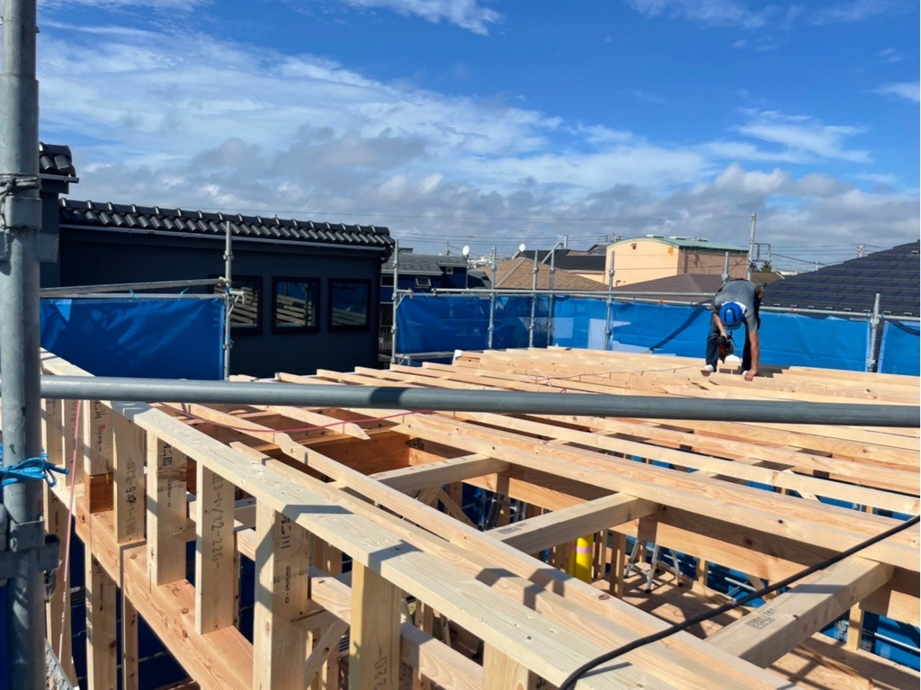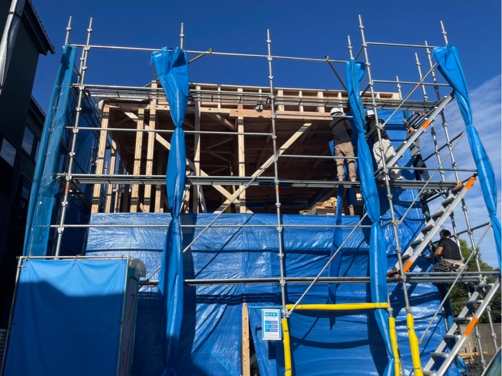 本日はお天気にも恵まれて茅ヶ崎で施工中である注文住宅が上棟となりました!