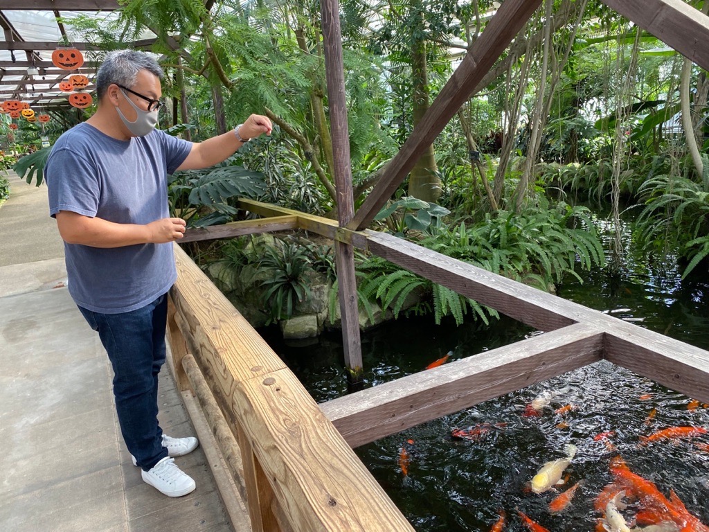 ちょうど行った先で温室の中に池があり鯉が泳いでいて100円で餌が売られていました。