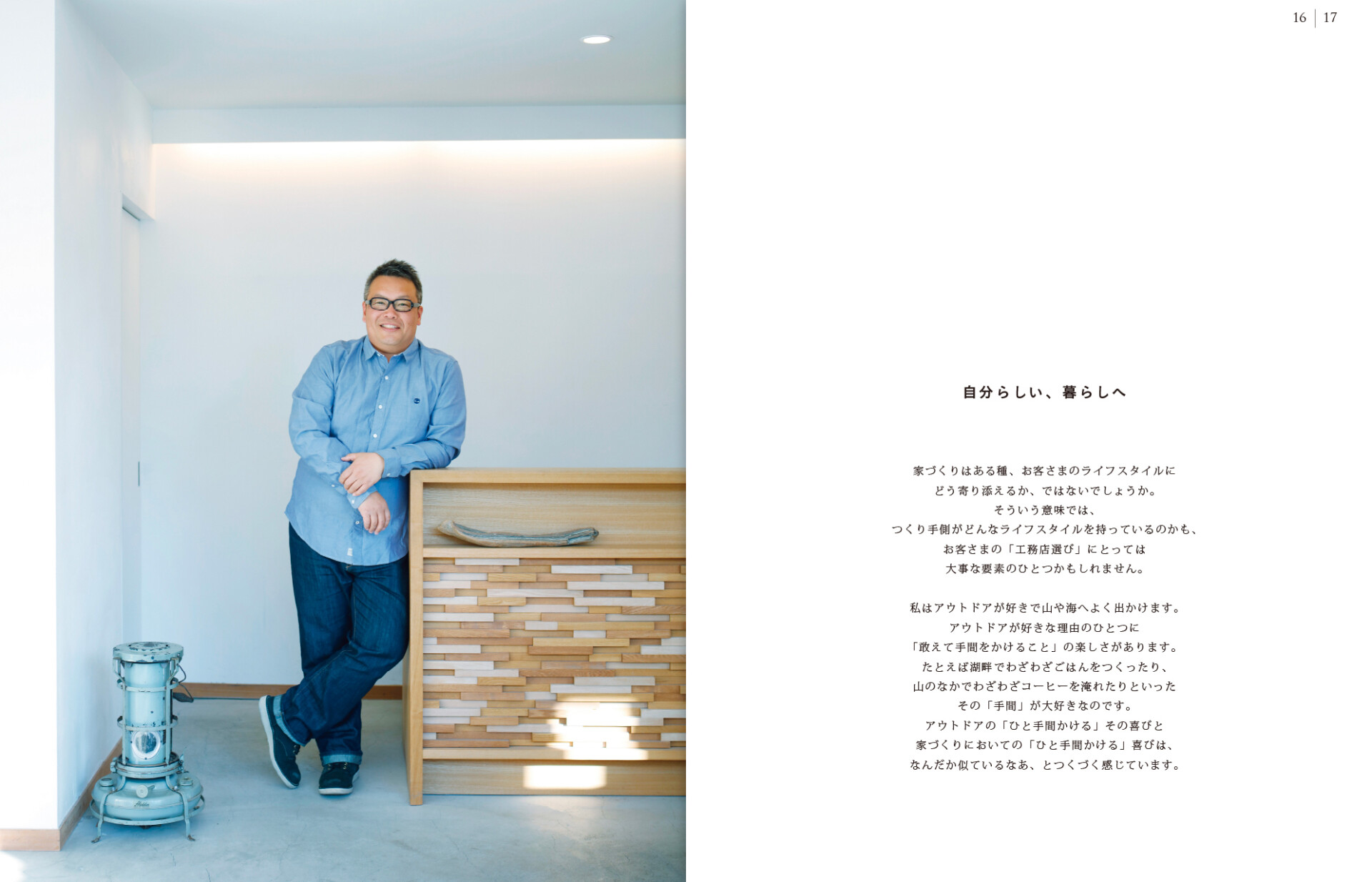 MATSUOの事務所には家を建てる方だけではなくサーフィンから帰ってくる人や散歩する人も事務所を覗き込んで気軽に挨拶を交わす。そんな空気感がWELCOMEの会社案内からは感じ取ることができるだろう。