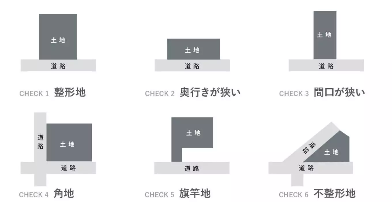 例えば、旗竿地と道路に沿った整形地であれば、一般的には後者の方が建築がしやすいため人気が高く、価格も高いことが予想されます。それに比べて旗竿地は価格が安く設定されているケースが多いです。