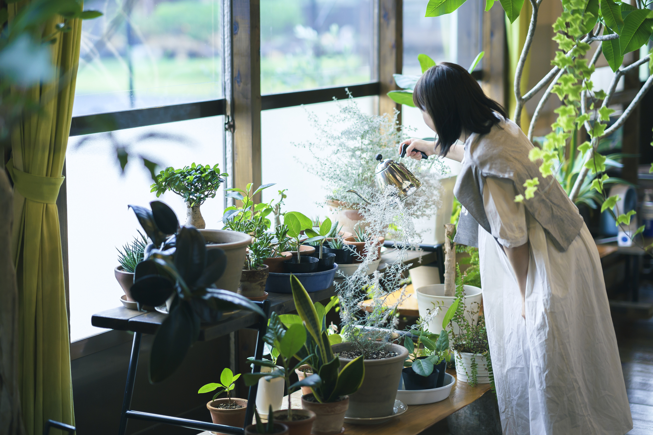 玄関を入ると、土間が吹抜けまで伸び、外の緑と内の緑が一体となるデザイン。この土間空間は自然光をたっぷり取り込み、家族や訪問者を暖かく迎える空間を作り出します。連続する緑と陽だまりの光景は、帰るたびに心を癒してくれます。