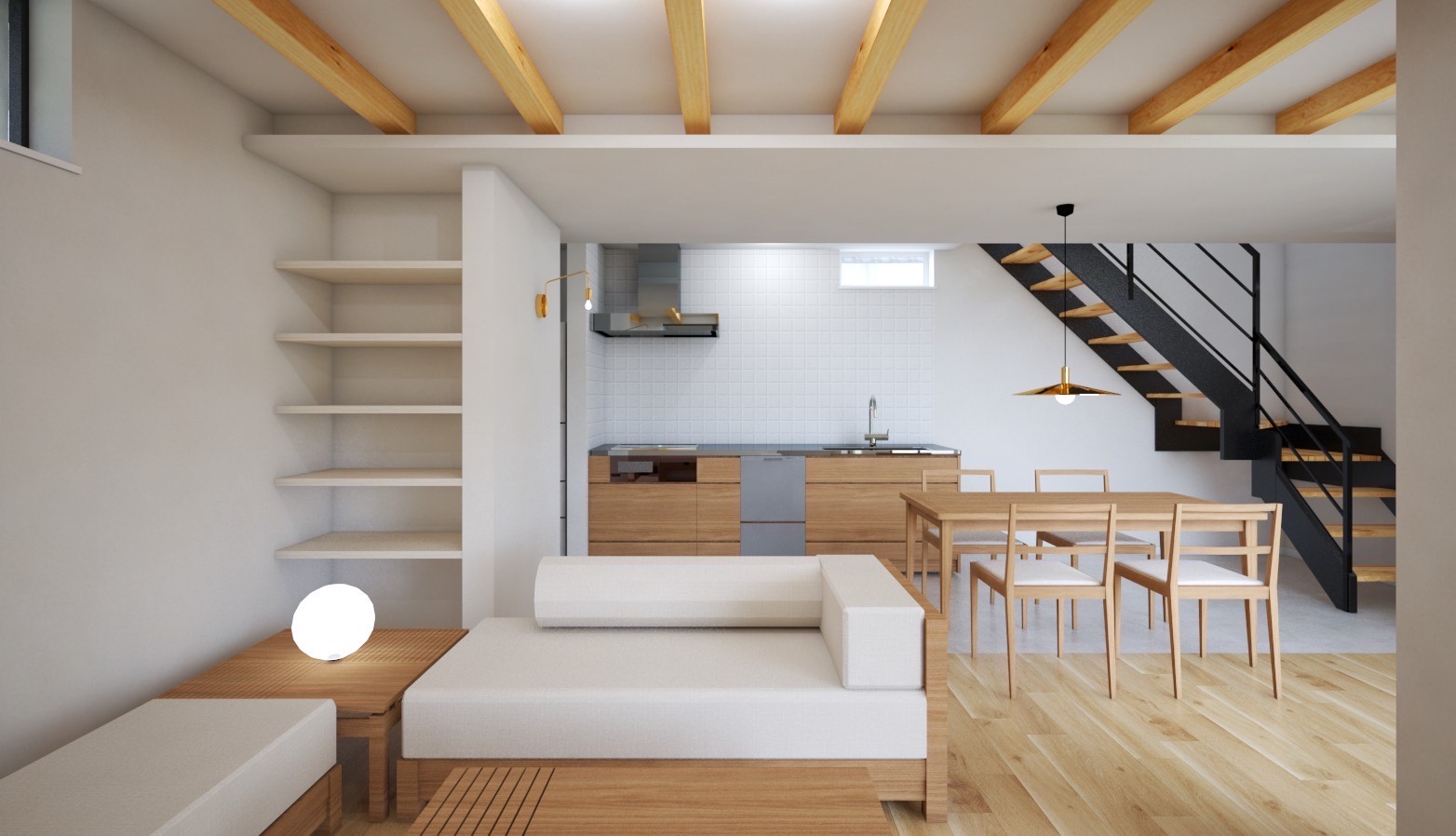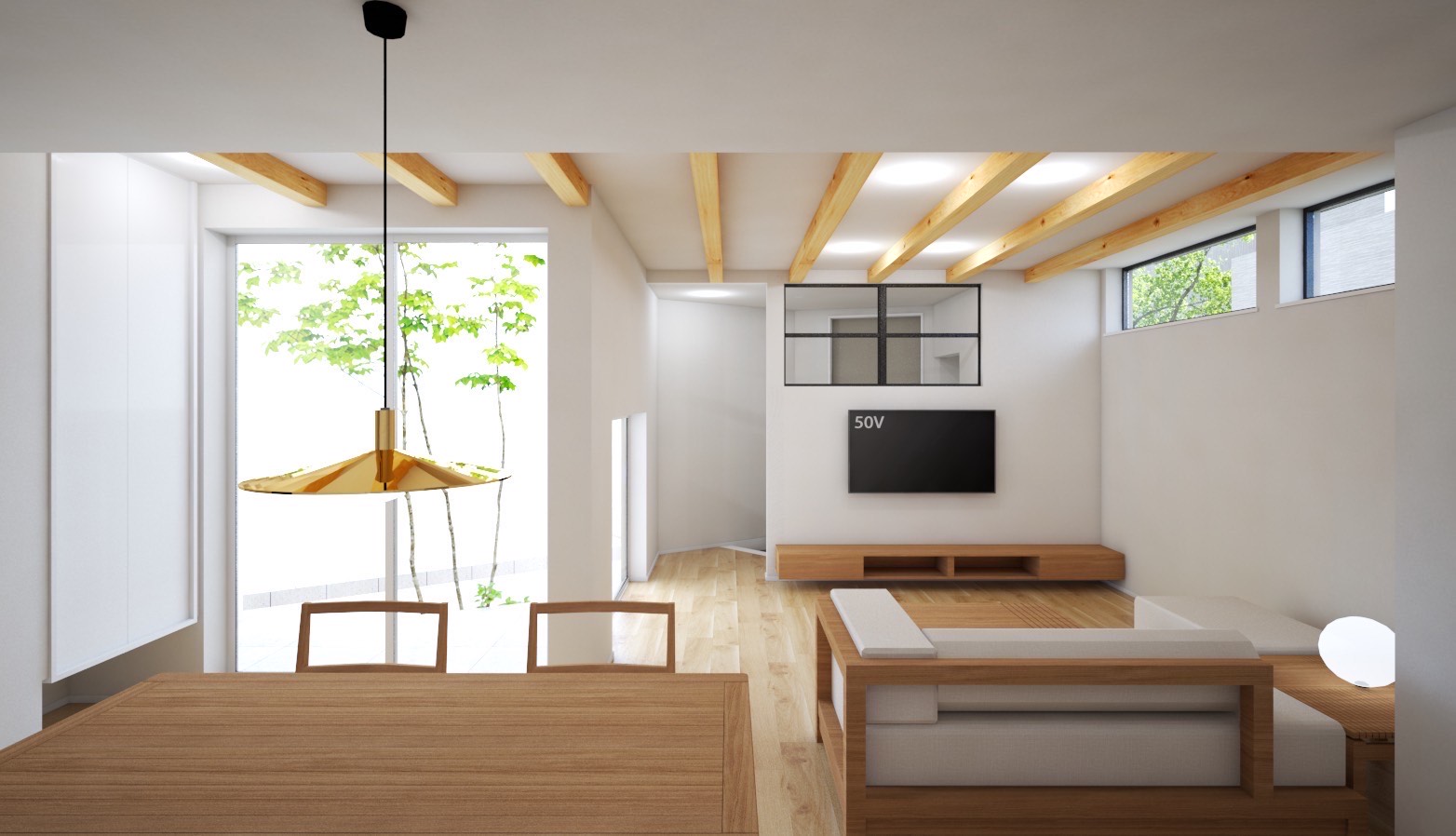 土地代を抑えながらも、明るく開放的なリビング空間 を実現しました。