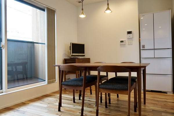U夫妻は、葉山のオーナー宅で見たダイニングテーブル&チェアに一目惚れし、それを制作した弊社のパートナーでもある家具工房HALF MOON FURNITURE WORKSHOP( https://halfmoon-f.com/ )に、同じダイニングテーブル&チェアと、テレビ台もオーダーしました。