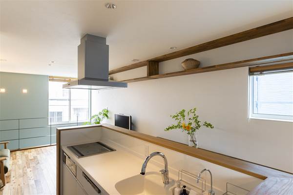 トシアキさん: 浦安のマンションではキッチンが北側にあって、彼女がいつもポツンと一人で家事をしているのが淋しかったらしいんですね。僕も知らなかったそんなことを斎藤先生がヒアリングしてくれて。キッチンを真ん中にすれば、家族が食卓にいても、リビングにいても、距離が近いでしょう。リビングも普通は南にするじゃないですか。でも、この土地だったら北側の方が眺めがすごく良いからと。
