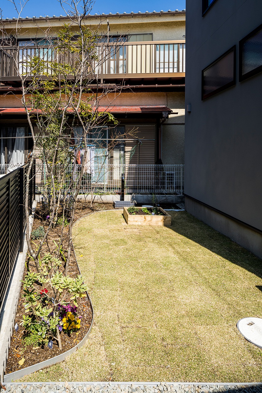 ノゾミさん: 実は後ろの家の住人の方も、私たちの家が建つことで日当たりが悪くなるのではないかと心配されていました。でも私たちが庭を設けたことで、後ろの家の日当たりが全く阻害されることがなかったので、すごく感謝されたんです。私たちだけでは気がつかないこうした心遣いをきちんとしていただいたおかげで、近隣の方々ともうまくやっていけるので本当に良かったです。