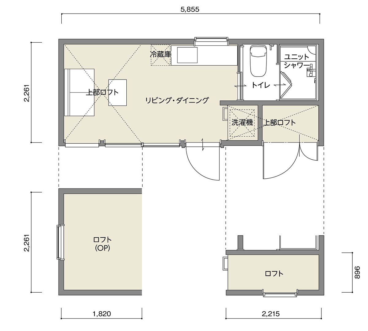 | オプション(別途費用) | ロフト床合板、ロフトはしご、ウッドデッキ、エアコン | ||