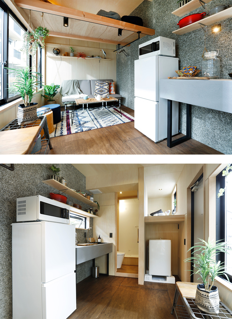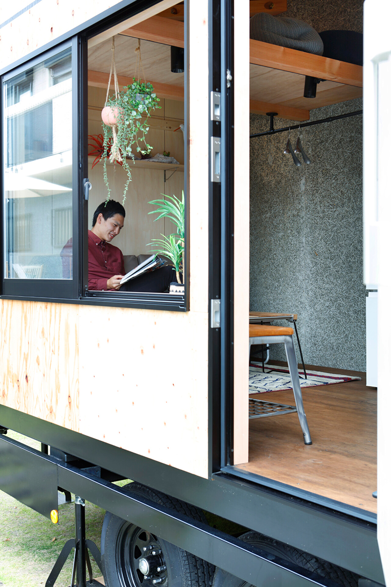 タイニーハウスづくりのノウハウを持ったYADOKARI、湘南で自然素材を使った注文住宅を手掛けているMATSUO、数々の規格住宅を開発してきたカーサプロジェクトの3社の経験を詰め込み、心地の良い住空間としてのトレーラーハウスが目指されました。